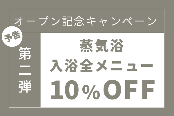 ☆蒸気浴入浴全メニュー”10%OFF ”☆